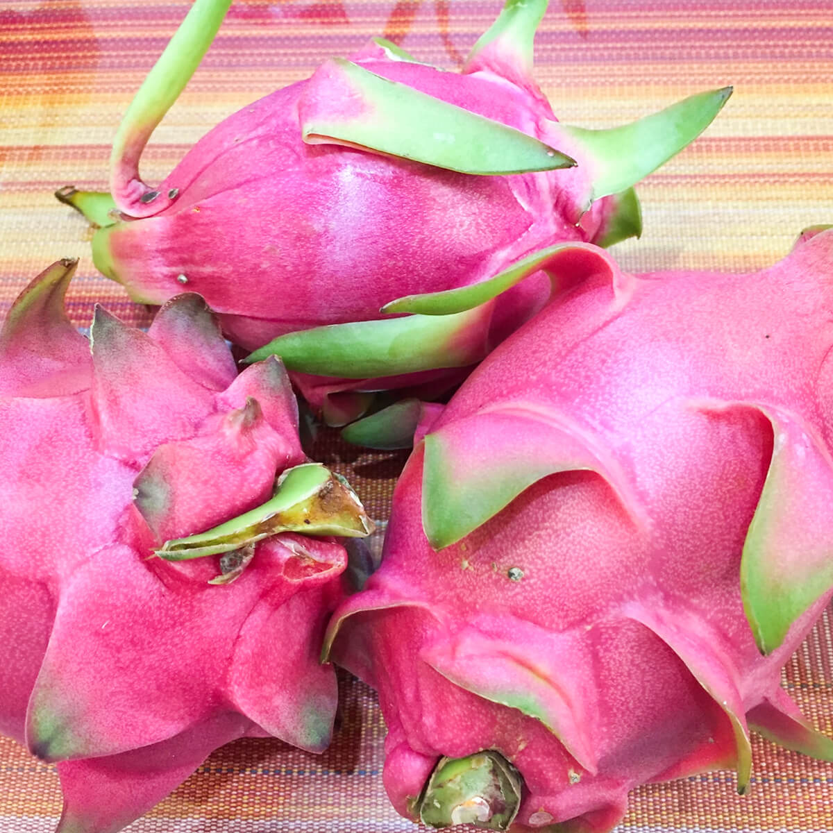 奥がドラゴンフルーツ、手前が島らっきょうです。